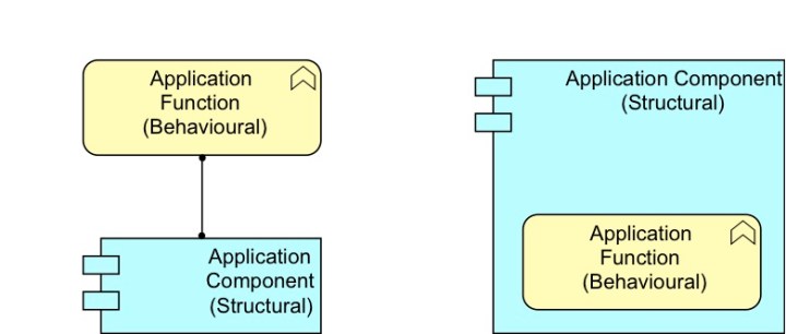 Seeing the composition of Application Functions on the right easily makes one use the word ‘structure’. And indeed, in a sense, there is a structure in the Application Function, as it is a composition of Application (sub)Functions. But though there is a ‘structure’, that does not mean the object itself is ‘structural’ in ArchiMate’s sense. Paraphrasing friend Ludwig: watch out for ‘bewitchment by language’. The fact that you are using (almost) the same word (‘structure’) does not automatically make it the same meaning.