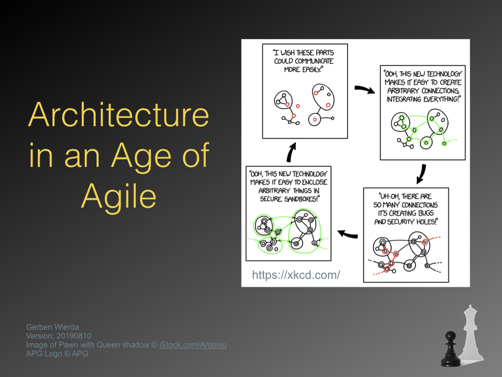 I’ve (finally!) posted the narrated presentation of a slightly adapted version of my keynote at the Enterprise Architecture Conference Europe 2018: “Architecture in an Age of Agile”. Both Architecture and Agile are important aspects of maximising your success in digital transformations. It can be seen as a follow up to my Gartner 2015 / EAC 2016 keynote “Chess and the Art of Enterprise Architecture”
