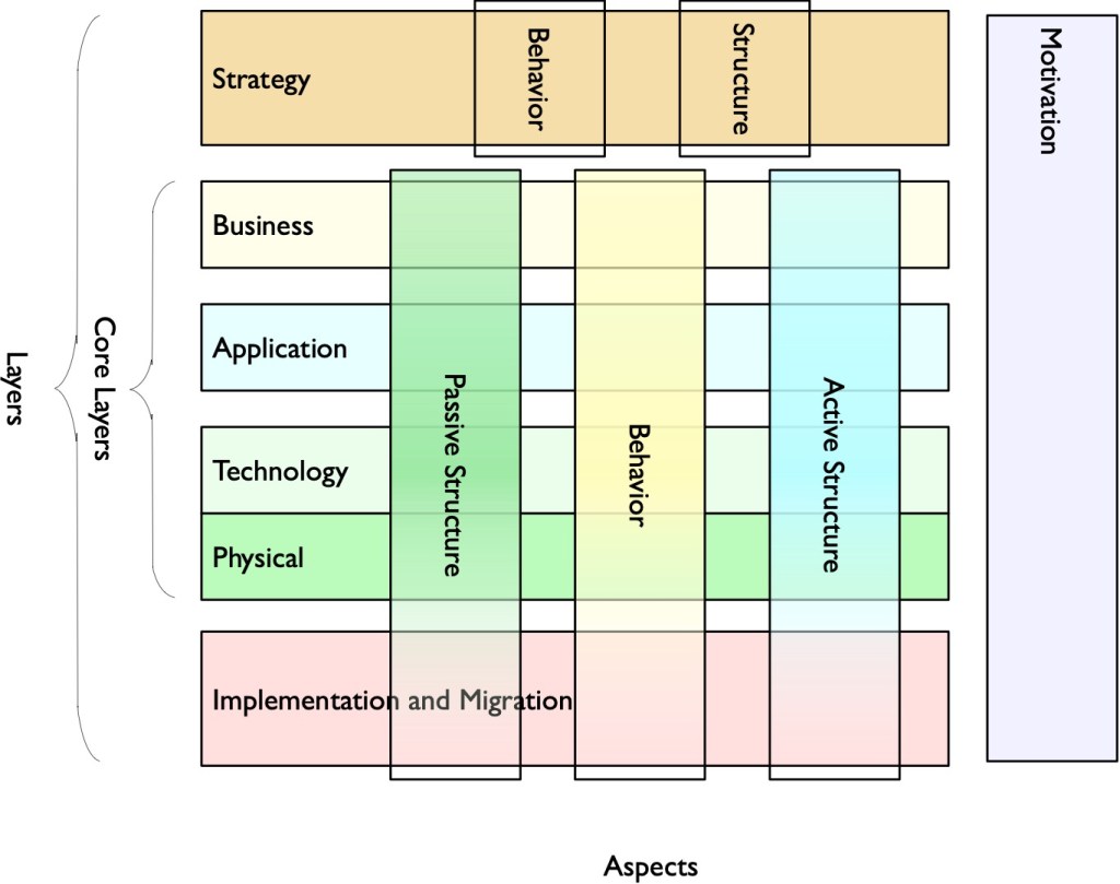 As represented here it can be extracted from well known frameworks like TOGAF or ArchiMate. There are various reasons to dislike this stack. Tom Graves for instance dislikes it (Dump the BDAT-stack!) because he dislikes everything that equates ‘enterprise architecture’ too much with IT. Hans Bosma for instance, too dislikes it too because it is too IT-centric and proposes a different stack (for ArchiMate) that consists of Organisation – Actor (both human and IT) – Infrastructure (general facilities). Some dislike the pure stack/layering idea completely and use something like this to organise their decisions: