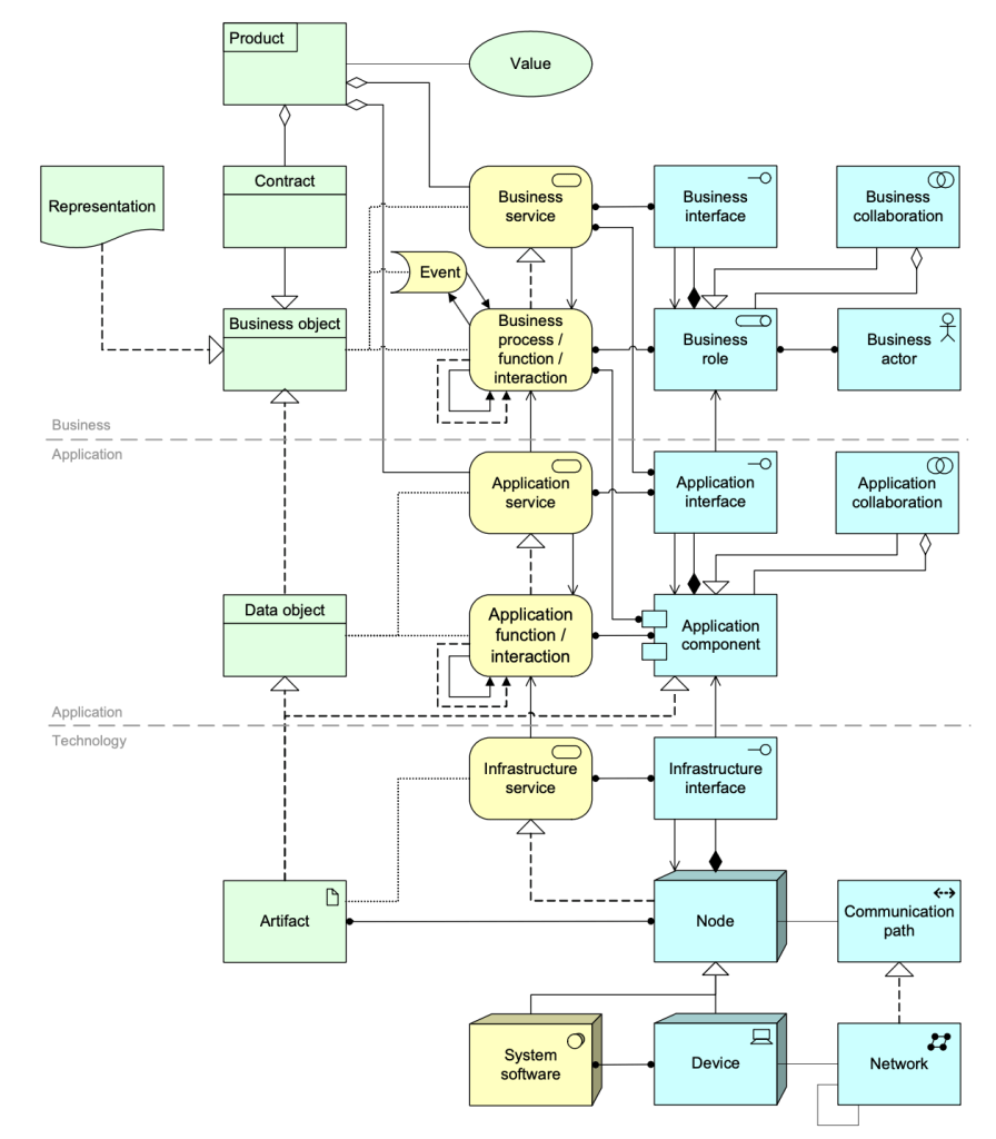 It helps when you already know ArchiMate if you want to read this post. The whole explanation of the language (actually, it’s a grammar) version 3.2 can be gotten for €0 via here (with some explanation, or directly here). Because this post is geekery with a bit of fun and philosophy.