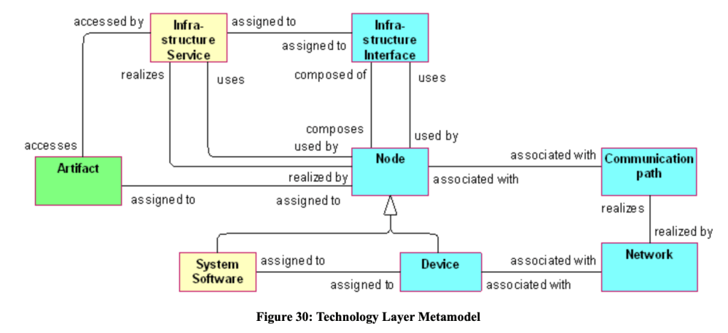 What also happened was that in the original ArchiMate, Assignment was more or less meant purely for ‘performing’ or ‘executing’. So, a Device Assigned to a Software System was meant as: de Device executes the Software System. TOG ArchiMate 1 says: “A device is defined as a physical computational resource upon which artifacts may be deployed for execution.” [It. GW]. From version 2 on it becomes ‘storage or execution’. As a result, Assignment not only covered ‘executing/performing’ anymore, but also something akin to Aggregation/Composition of a Passive Structure element by an Active Structure element. It is a nice illustration how the original design missed some essentials in the ‘infrastructure’ domain (like storage), a domain that apparently wasn’t a very important aspect for them. TOG fixed some of that over the years.