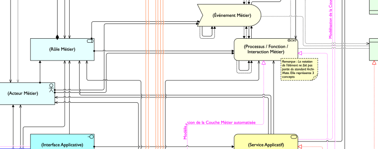 Je publie aujourd’hui une traduction française de mes fiches (PDF) de présentation ArchiMate, un guide visuel et concis de la grammaire ArchiMate. La première page contient le métamodèle du Cœur du framework ArchiMate. Il est représenté dans le jeu de…